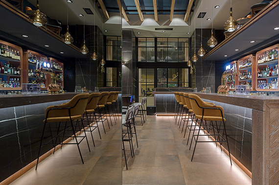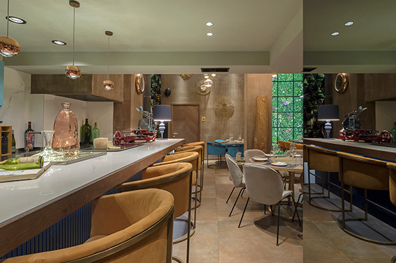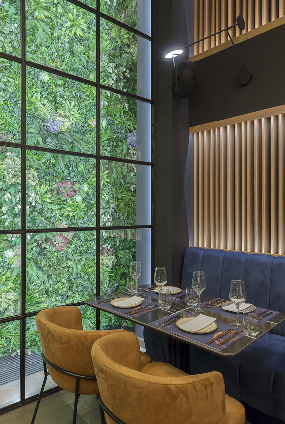 Εξωτερικώς και από τα φιμέ του τζάμια είναι δύσκολο να διακρίνεις τι πολύτιμο μπορεί να κρύβει μέσα του, αλλά όταν ανοίξεις τις πόρτες του περιβάλλεσαι από την καλαισθησία του. Αυτό το θέμα συνεχίζεται τόσο στην αισθητική του χώρου, με τους κρυφούς του φωτισμούς, αλλά και τον δεύτερο κάθετο χώρο στο βάθος όπου κρύβεται το μοναδικό του presentation bar, όσο και στο μενού του με πιάτα που περιλαμβάνουν μικρές «κρυμμένες» εκπλήξεις γεύσεων.